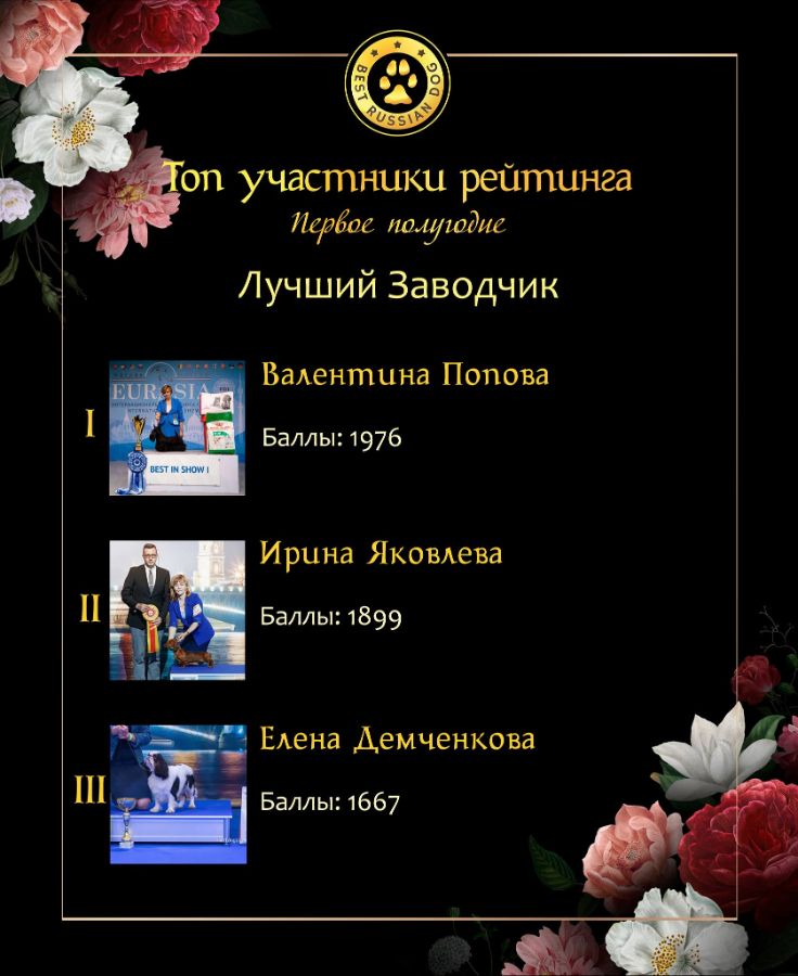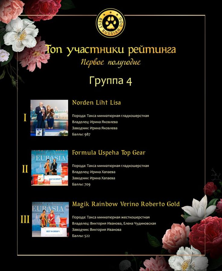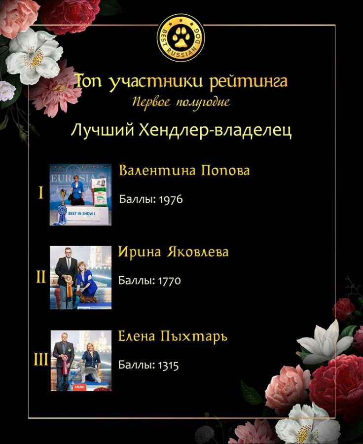 Опубликованы данные рейтинга "Лучшие собаки России" IDSR (International Dog Show Ranking) за первое полугодие 2019!